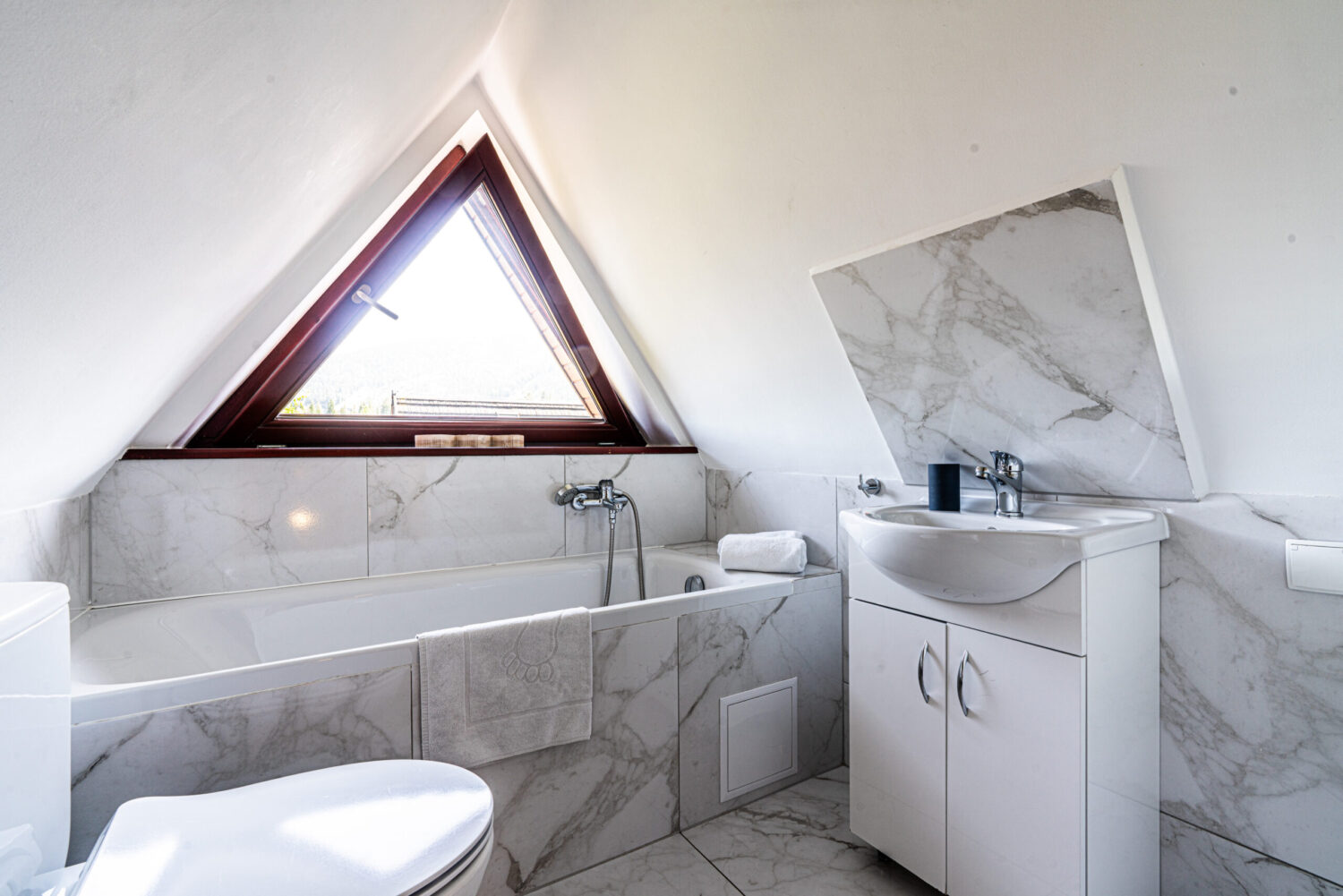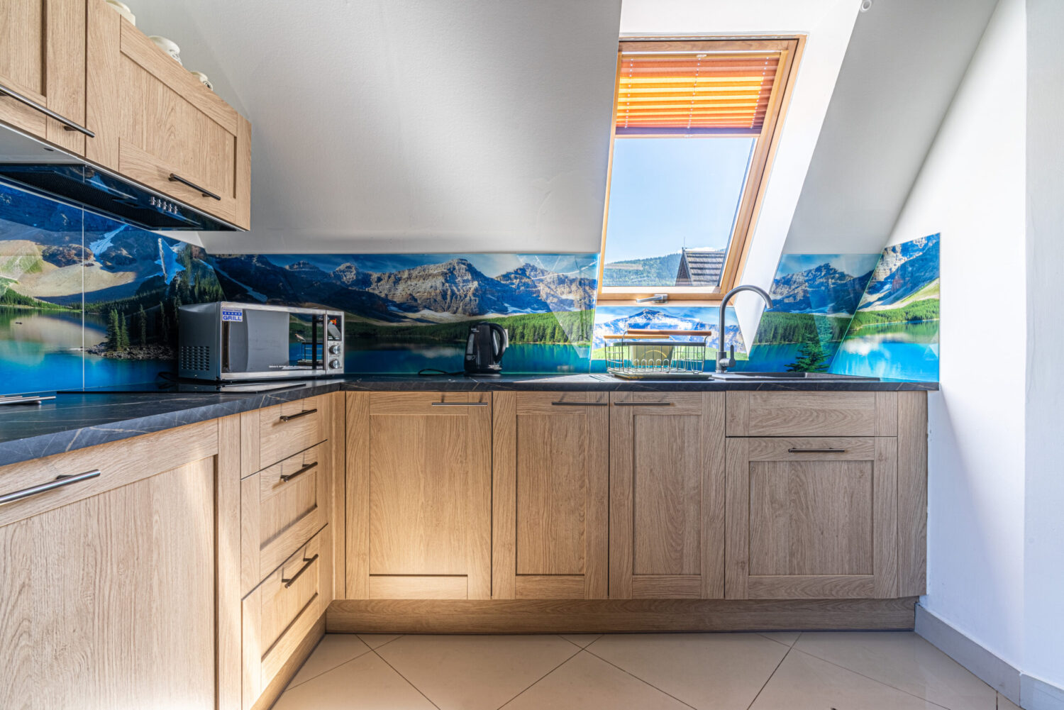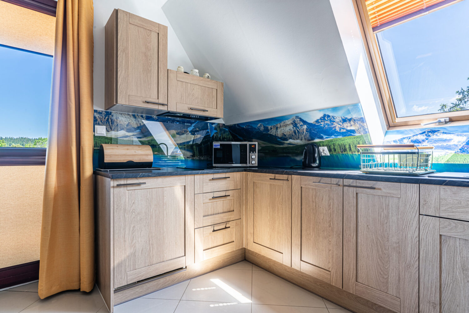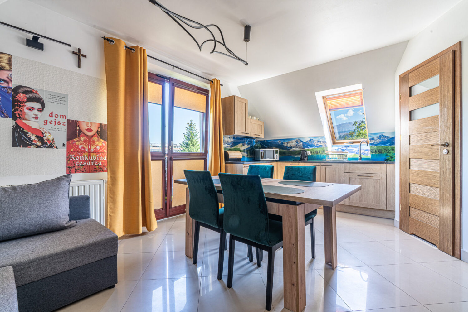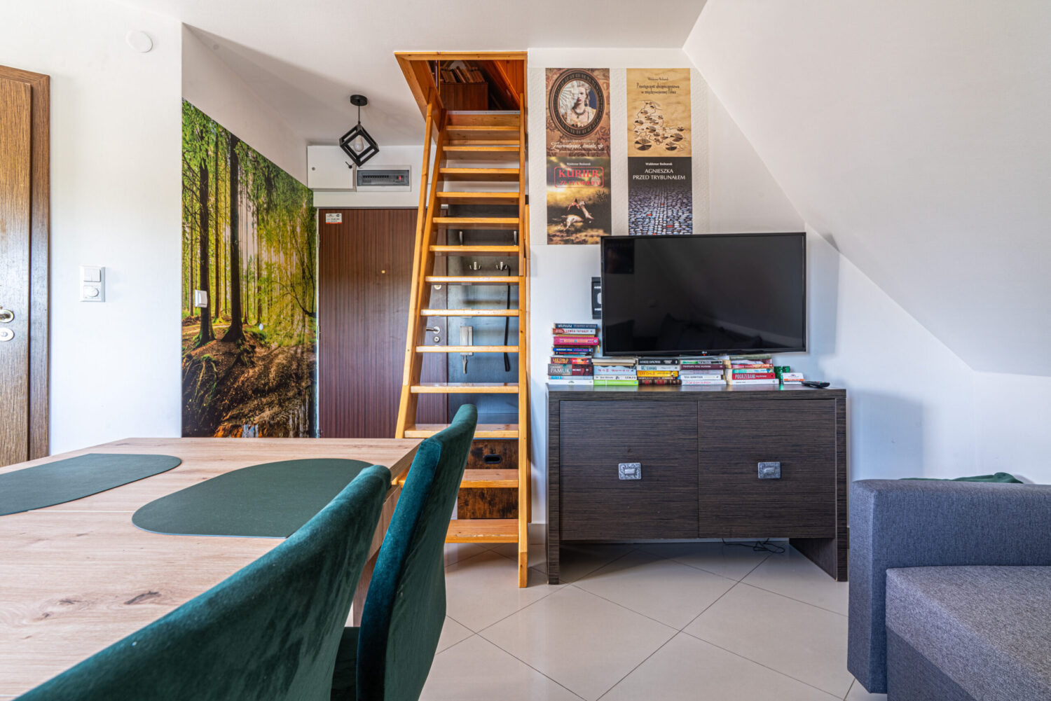 Apartament Literacki położony jest w centrum Zakopanego, około 600 metrów od ulicy Krupówki, a także w podobnej odległości do wejścia do Tatrzańskiego Parku Narodowego. Dzięki położeniu jest świetną i komfortową bazą wypadową do spędzenia wypoczynku w Zakopanem. Apartament składa się z dwóch poziomów. Na pierwszym poziomie znajduje się salon z w pełni wyposażonym aneksem kuchennym oraz łazienka z kabiną prysznicową. Na drugim poziomie znajdują się dwie sypialnie z podwójnymi łóżkami oraz łazienka z wanną. Do sypialni prowadzą drewniane schody. Na górnym poziomie ściany są w drewnianych skosach. Dla miłośników książek znajdzie się także dobra książka do przeczytania.