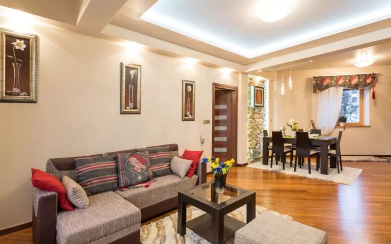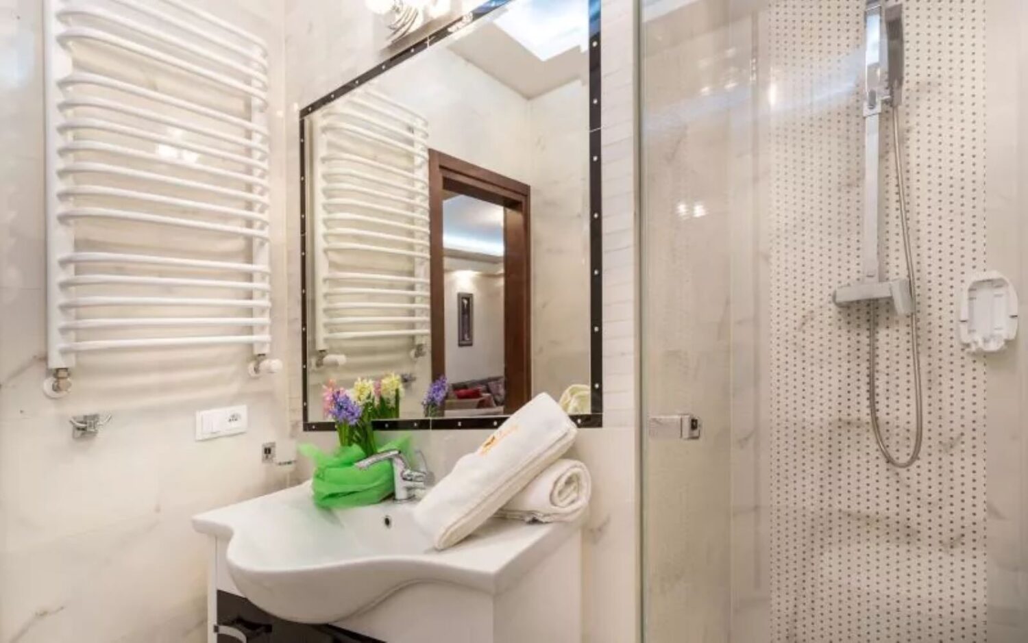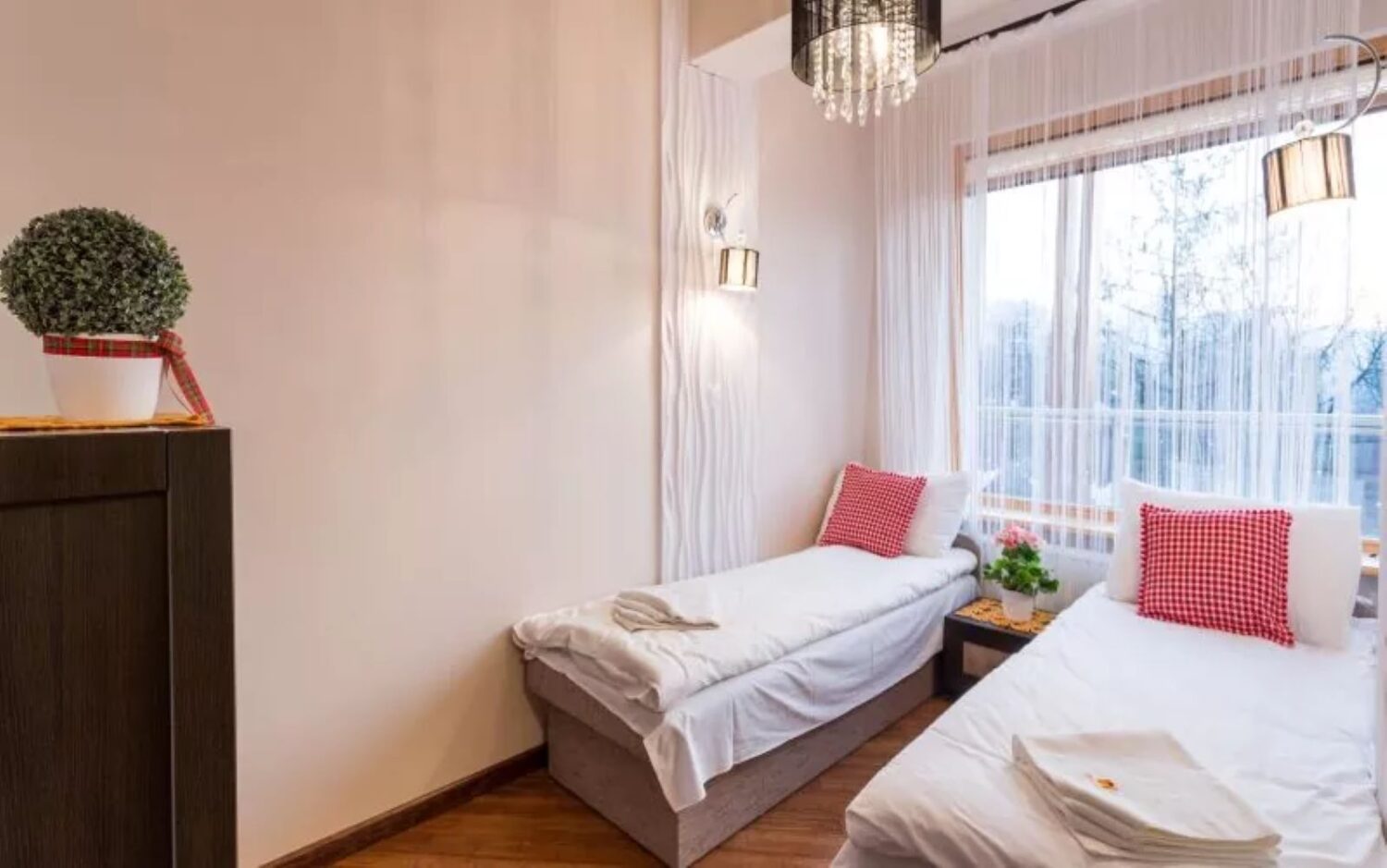 Apartament znajduje się na trzecim piętrze. Składa się z dwóch sypialni, salonu z aneksem kuchennym i łazienki z kabiną prysznicową. Jedna z sypialni posiada dwa pojedyncze łóżka, a druga duże podwójne. W salonie znajduje się rozkładana kanapa dla dwóch osób.