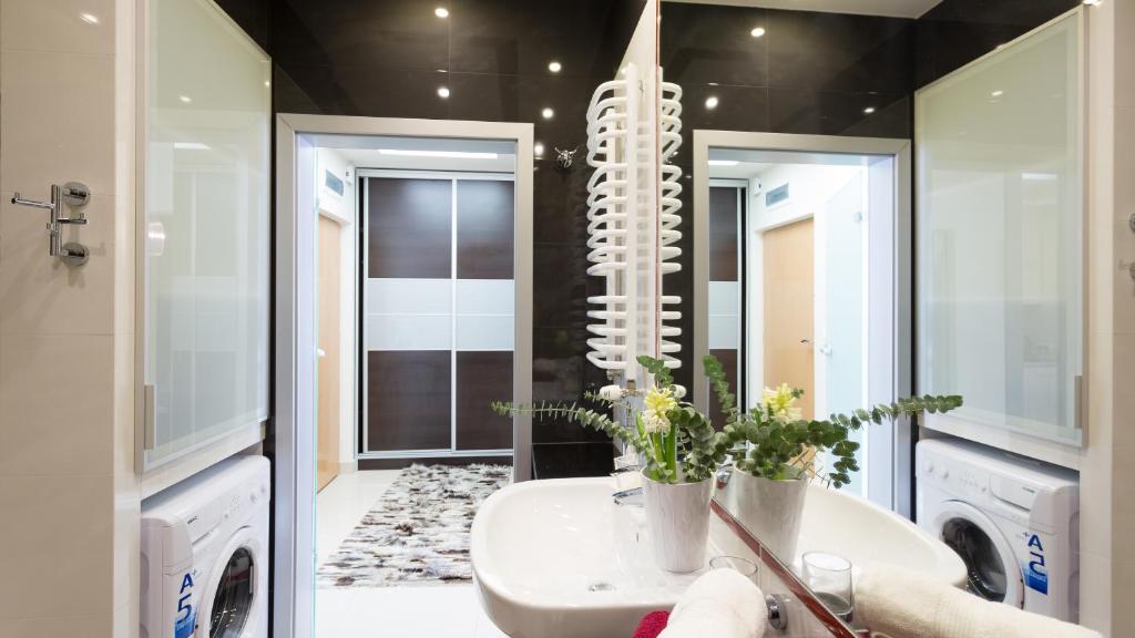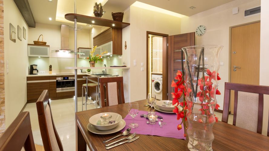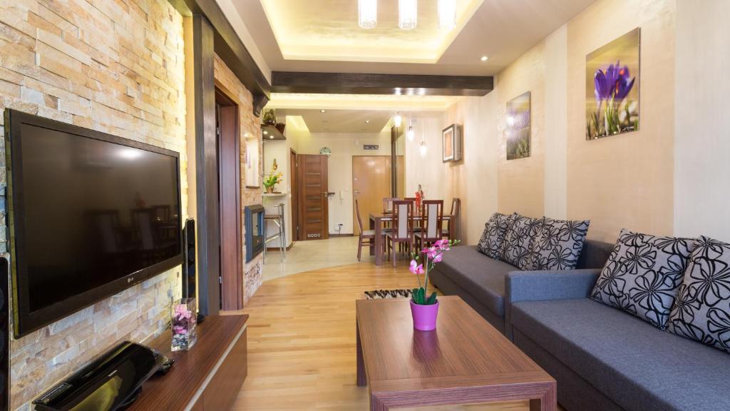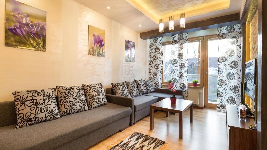 Apartament położony jest na pierwszym piętrze. Składa się z sypialni z podwójnym łóżkiem, salonu z dwoma rozkładanymi kanapami, aneksu kuchennego i łazienki z kabiną prysznicową. Doskonała lokalizacja i wyposażenie pozwoli wypocząć całej rodzinie. Do apartamentu przynależy miejsce parkingowe w garażu.