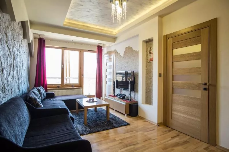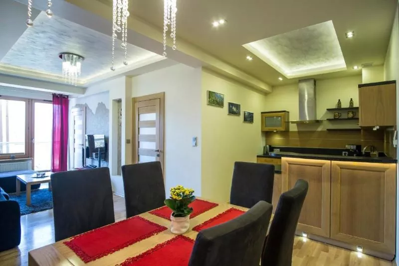 Nowoczesny, elegancki apartament, znajdujący się na trzecim piętrze budynku. Świetne miejsce dla rodzin z dziećmi lub grupy przyjaciół. Salon z aneksem kuchennym, dwie komfortowe sypialnie (w nich łóżka małżeńskie) oraz łazienka z prysznicem tworzą przestrzeń do prawdziwego wypoczynku! Z kanapy w salonie roztacza się widok na majestatyczne góry.. Do apartamentu przynależy miejsce parkingowe w garażu.