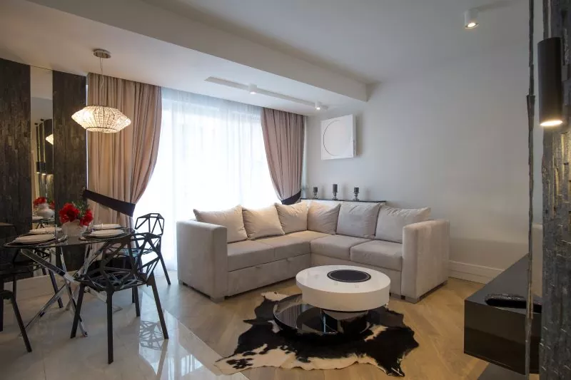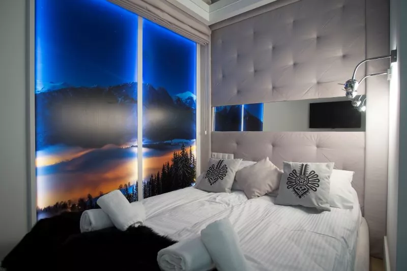 Okazały apartament z dostępem do jacuzzi, basenu i sauny. Składa się z dwóch sypialni i przestronnego salonu z rozkładaną sofą i TV. To pomieszczenie połączone jest z pełni wyposażonym aneksem kuchennym. W łazience jest kabina prysznicowa, a także pralka i suszarka do włosów. W standardzie Wi-Fi i klimatyzacja. Do apartamentu przynależy 1 miejsce parkingowe.