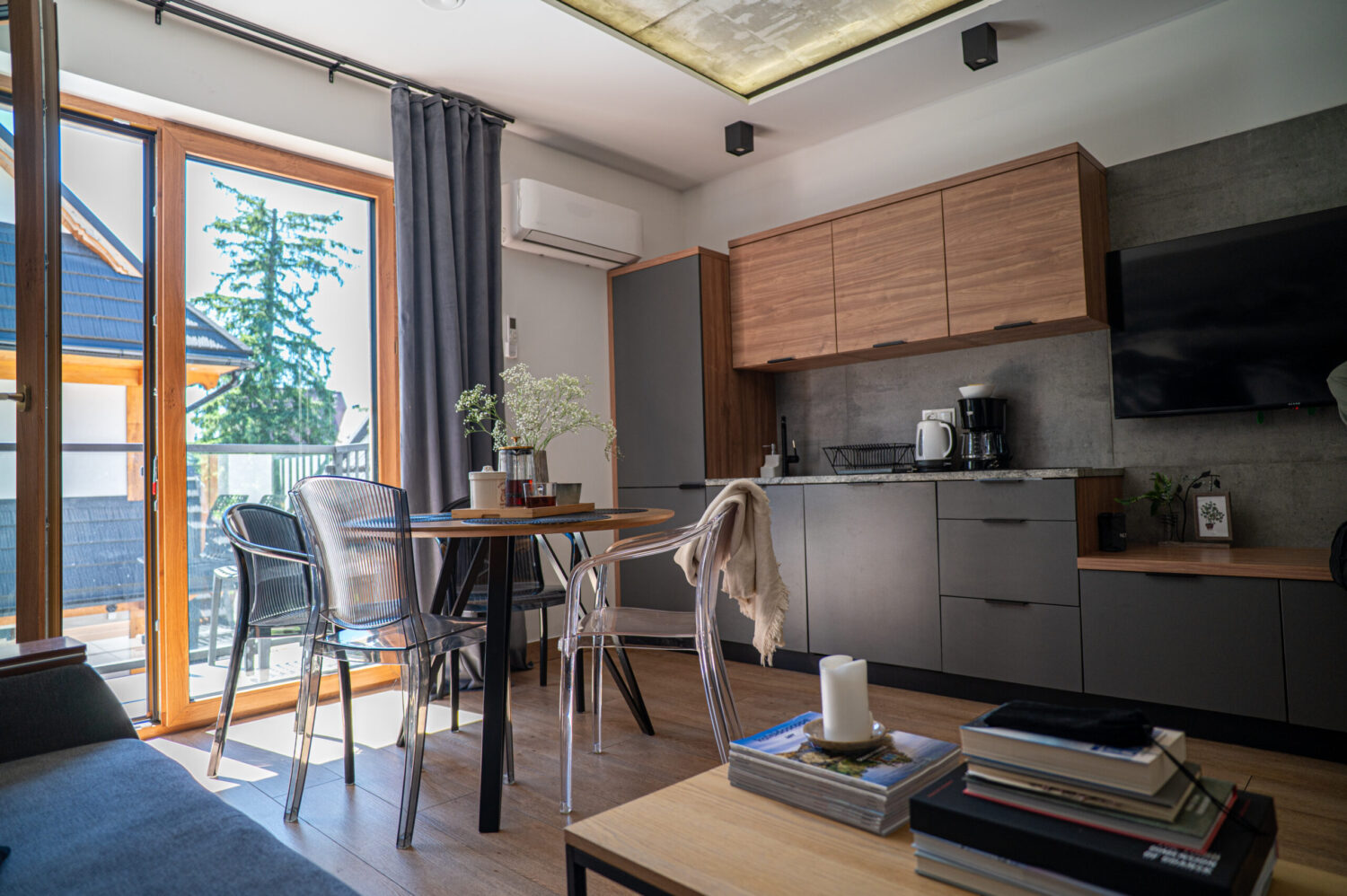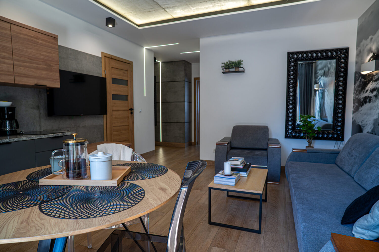 Budynek w którym mieści się apartament usytuowany jest w samym centrum miasta. Lokalizacja umożliwia spacerowanie do popularnego deptaka Krupówki, ale jest także idealną bazą wypadową do Kużnic oraz na górskie szlaki. Apartament zaprojektowany i przygotowany z wielką starannością. Przystosowany zarówno do pobytu rodzinnego jak i grupy przyjaciół.