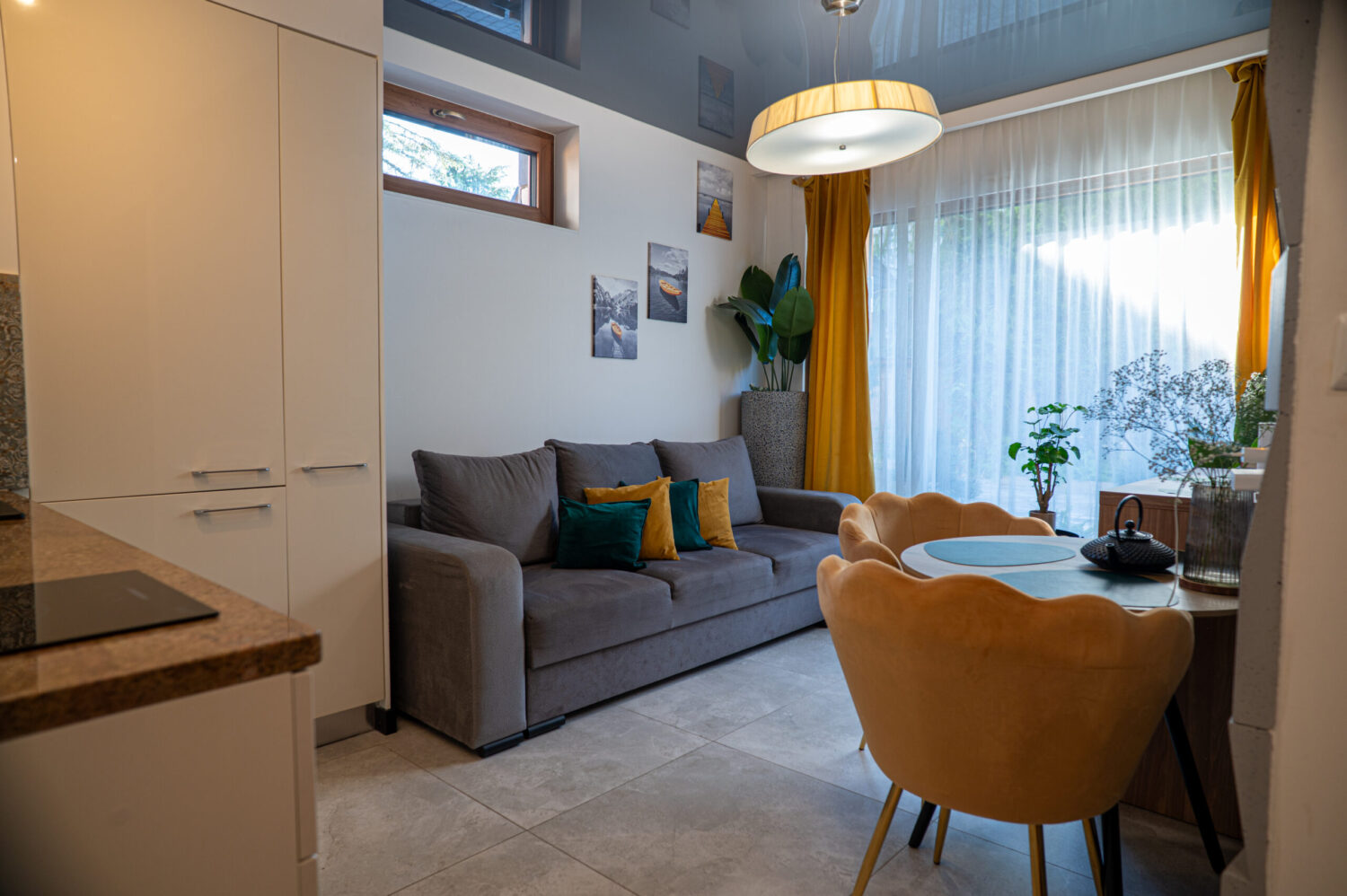Budynek w którym mieści się apartament usytuowany jest w samym centrum miasta. Lokalizacja umożliwia spacerowanie do popularnego deptaka Krupówki, ale jest także idealną bazą wypadową do Kużnic oraz na górskie szlaki. Apartament zaprojektowany i przygotowany z wielką starannością. Przystosowany zarówno do pobytu rodzinnego jak i grupy przyjaciół.