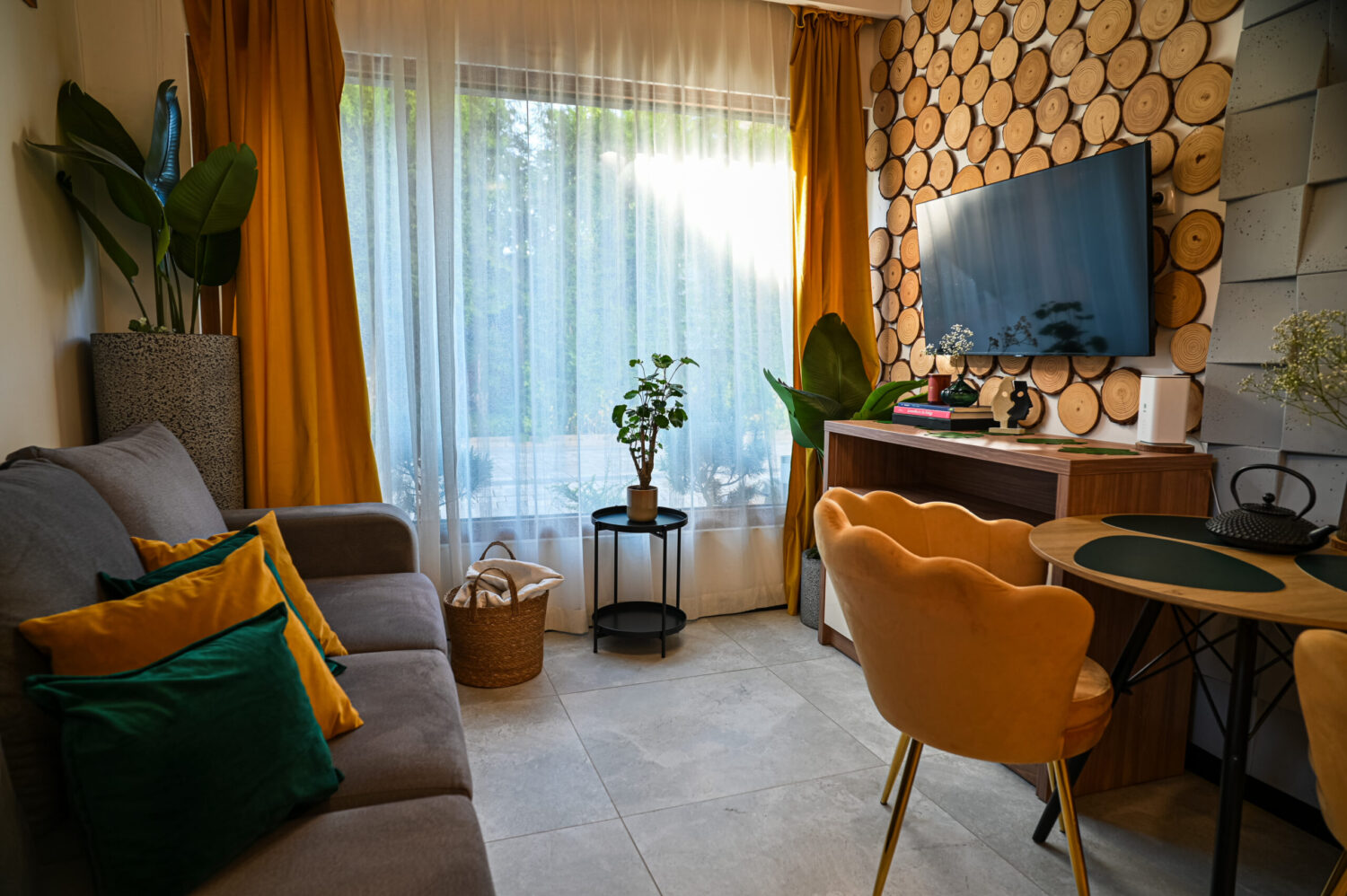 Studio MARCIN to bardzo przytulne studio dla trzech osób. Studio ma osobno zamykaną sypialnię , a w niej duże małżeńskie łóżko dla dwóch osób. W salonie rozkładana kanapa, stolik z krzesłami, tv, aneks kuchenny ze wszystkimi kuchennymi przyborami (ekspres, czajnik, kuchenka, zlew, lodówka, szklanki, kieliszki, talerze, mikrofala, zmywarka) . Studio znajduje się na parterze budynku.